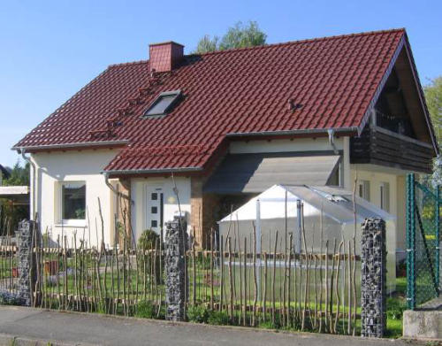 gewöhnt. Die Zaunpfeiler sind aus Gabionen mit heimischer Basaltfüllung und die Zaunfelder aus